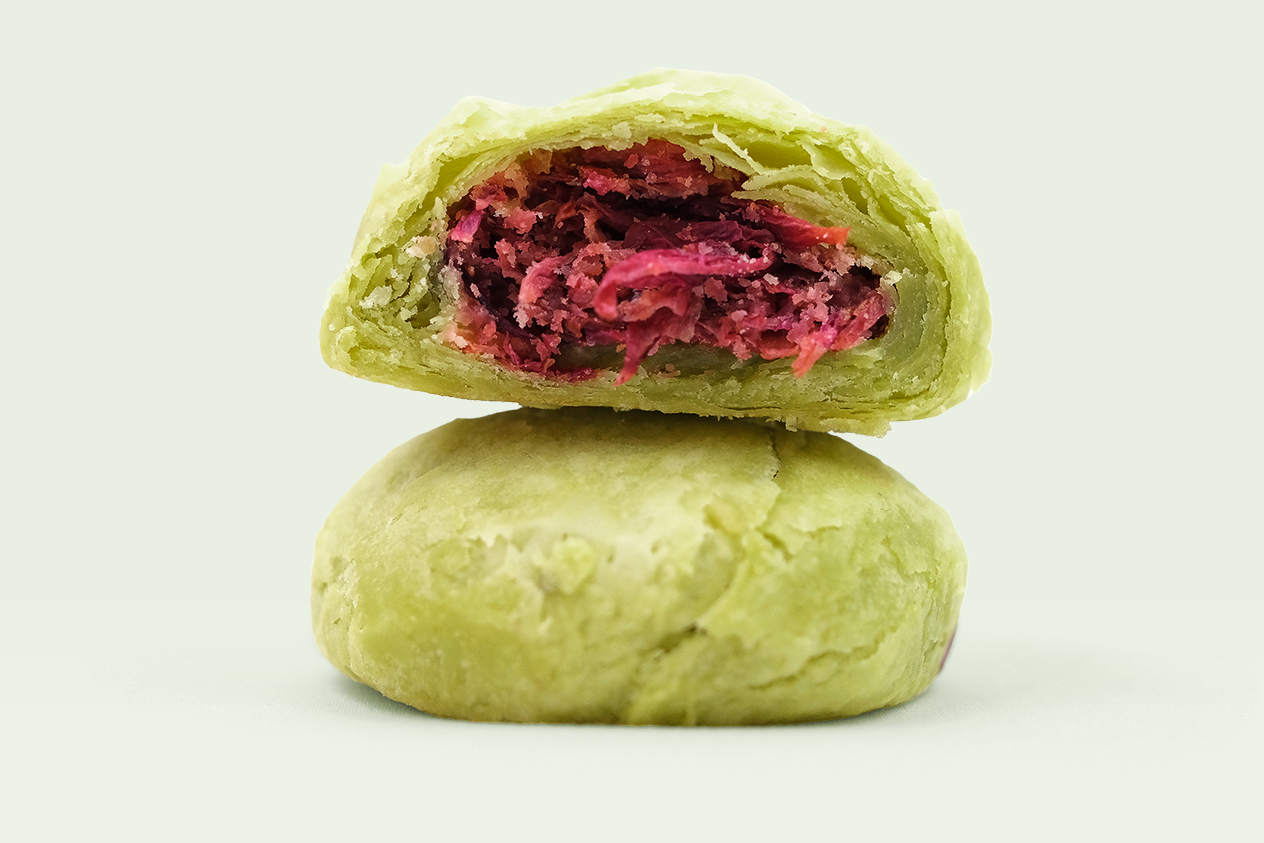 大马士革玫瑰独有的美丽和香气, 让它数百年来一直被用来制作香水和各类饮食。 我们的玫瑰类鲜花饼选取经过食用改良大马士革玫瑰。它有着更怡人的香气和偏果味的口感, 是最适合被用作食物的亚种。我们仔细挑选每一朵玫瑰, 然后经历数道工序去杂洗净, 以保证安全和品质。而后才会由烘培师进行手工制作, 让面与鲜花达到完美而微妙的平衡。